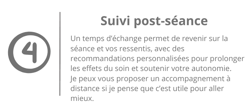 L’objectif est de vous transmettre des outils pour mieux comprendre et gérer vos douleurs en toute autonomie. Aucun suivi n’est imposé : vous restez libre de reprendre rendez-vous selon vos besoins et vos ressentis.